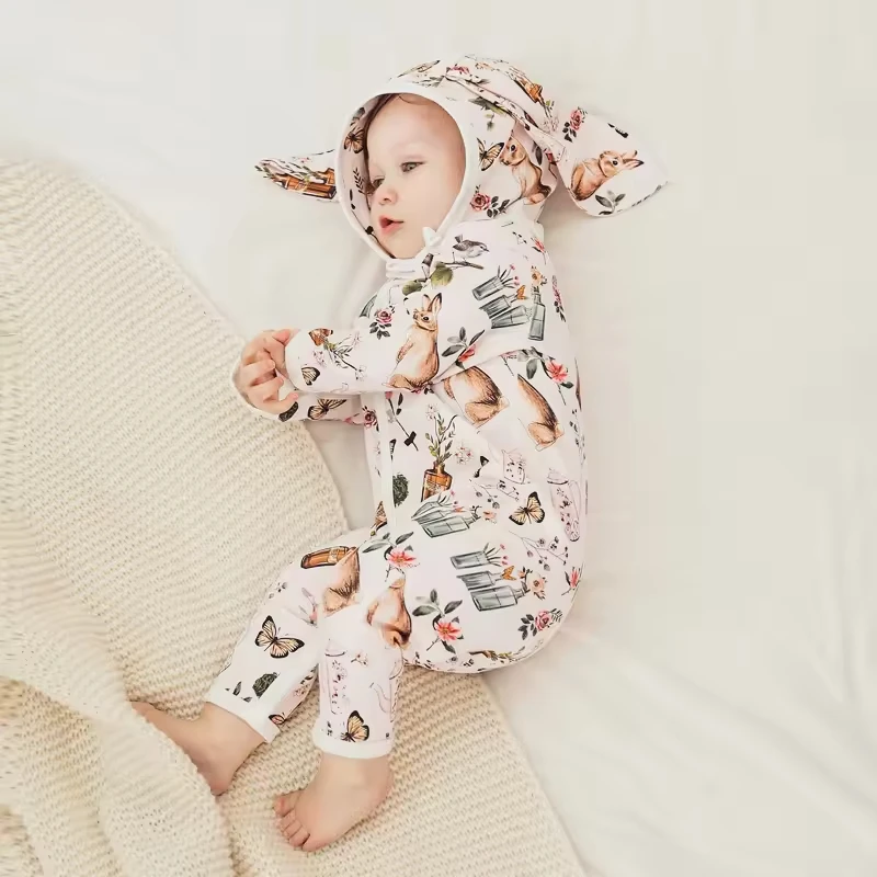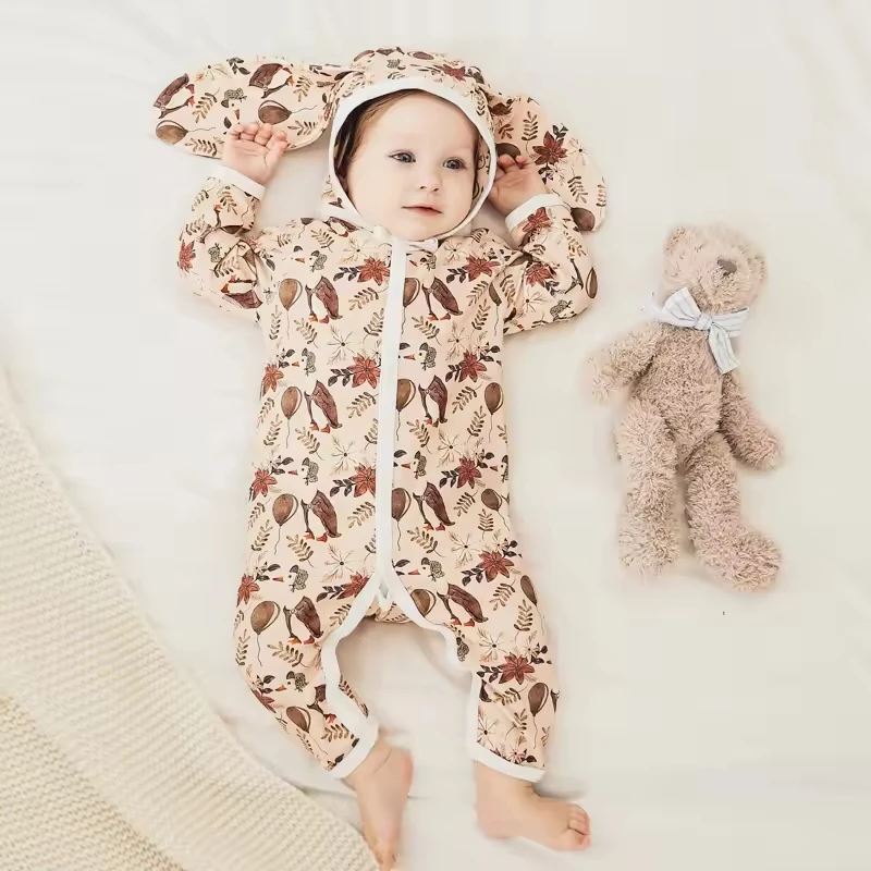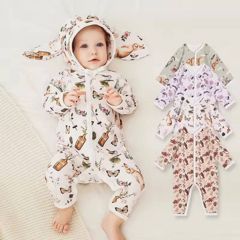 Wholesale Custom Print Infant Soft Long-sleeved Cartoon Butterfly Clothes Crawling Baby Jumpsuit Clothes